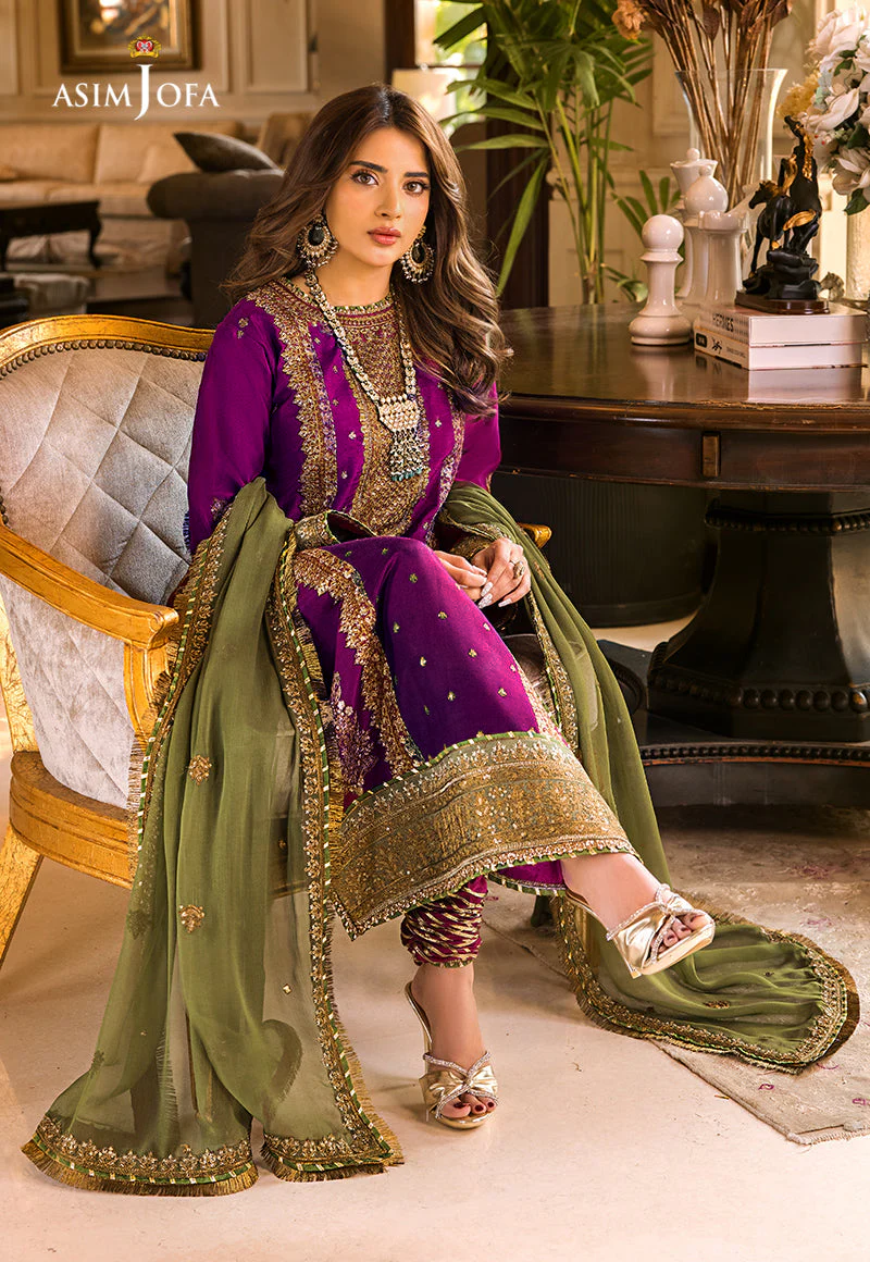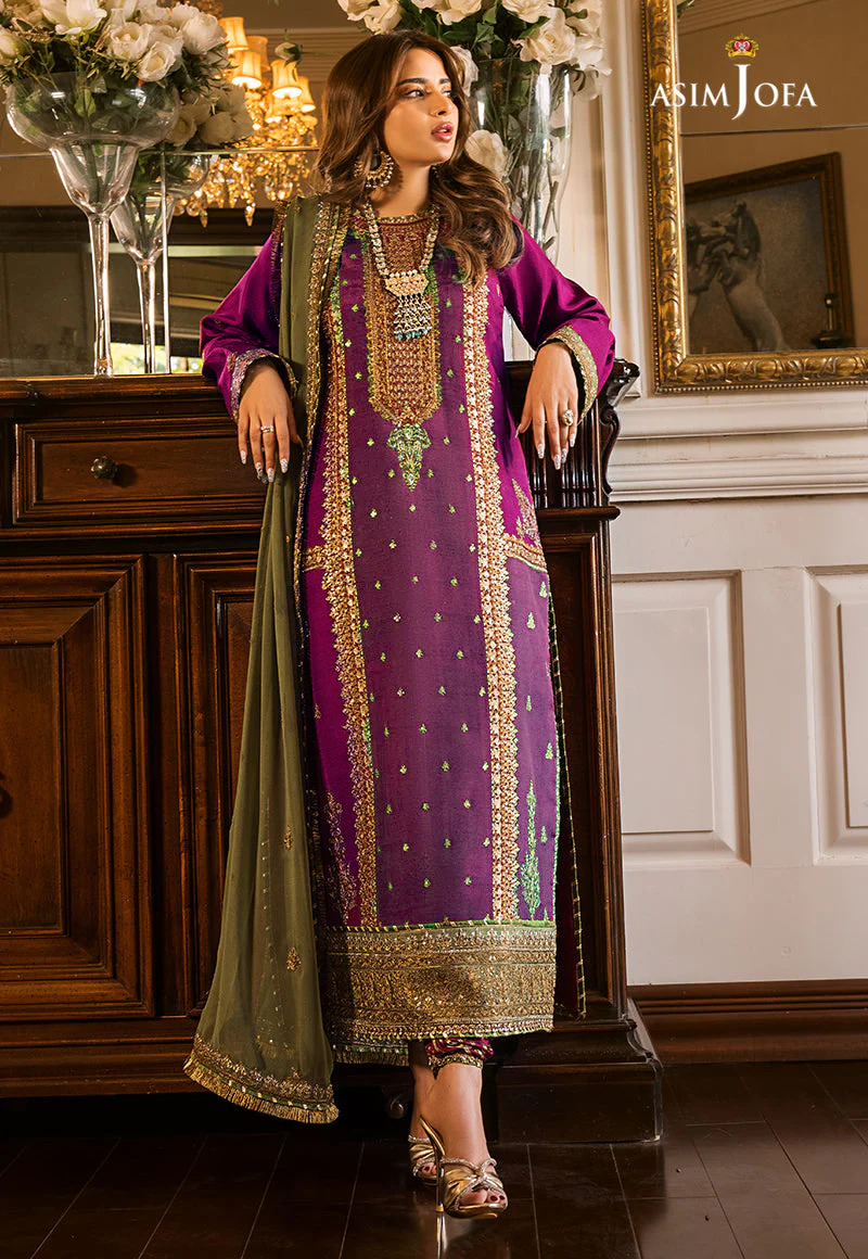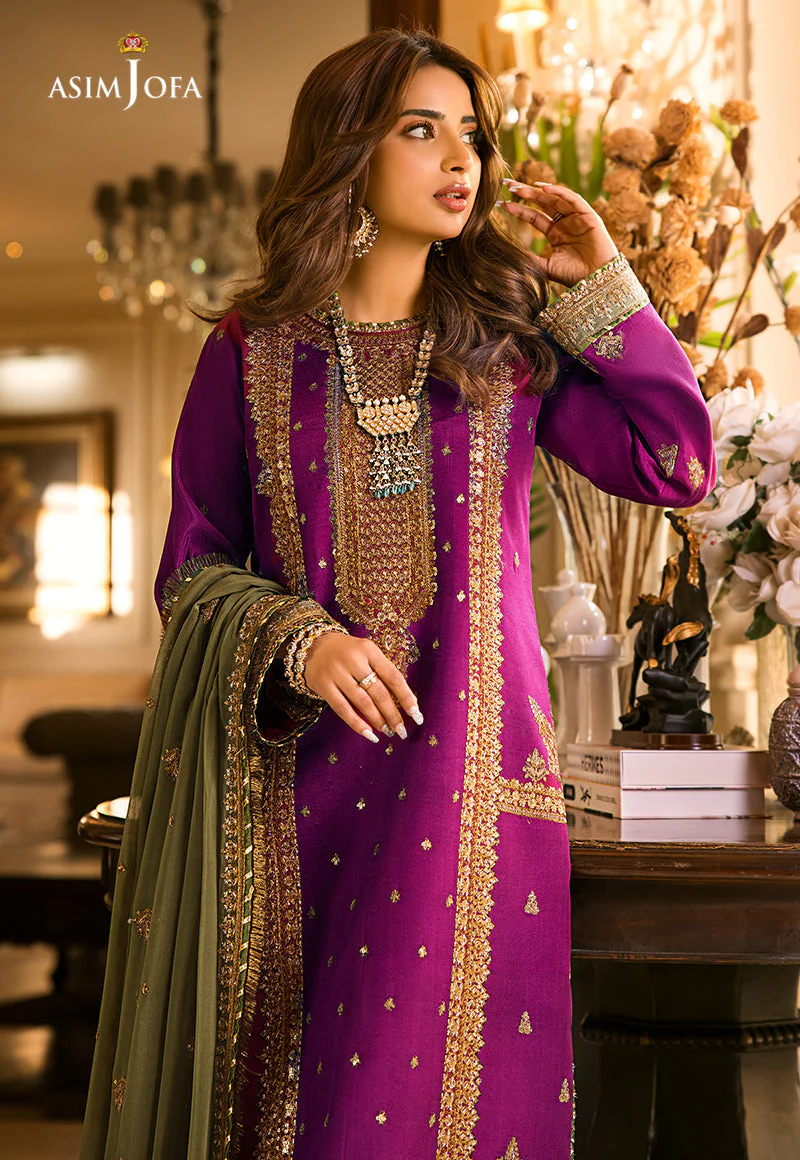 3 Piece Stitched - Embroidered Chiffon Purple | AsimJofa