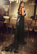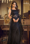 With the mesmerizing statement that Sajal Aly embodies, the lovely noir chiffon saree is crafted to perfection with diagonally embroidered sequins and a fully embroidered blouse covered with spangles. The endearing silhouette is bound to create a smoldering look this season and is definitely going to steal the thunder of every occasion.