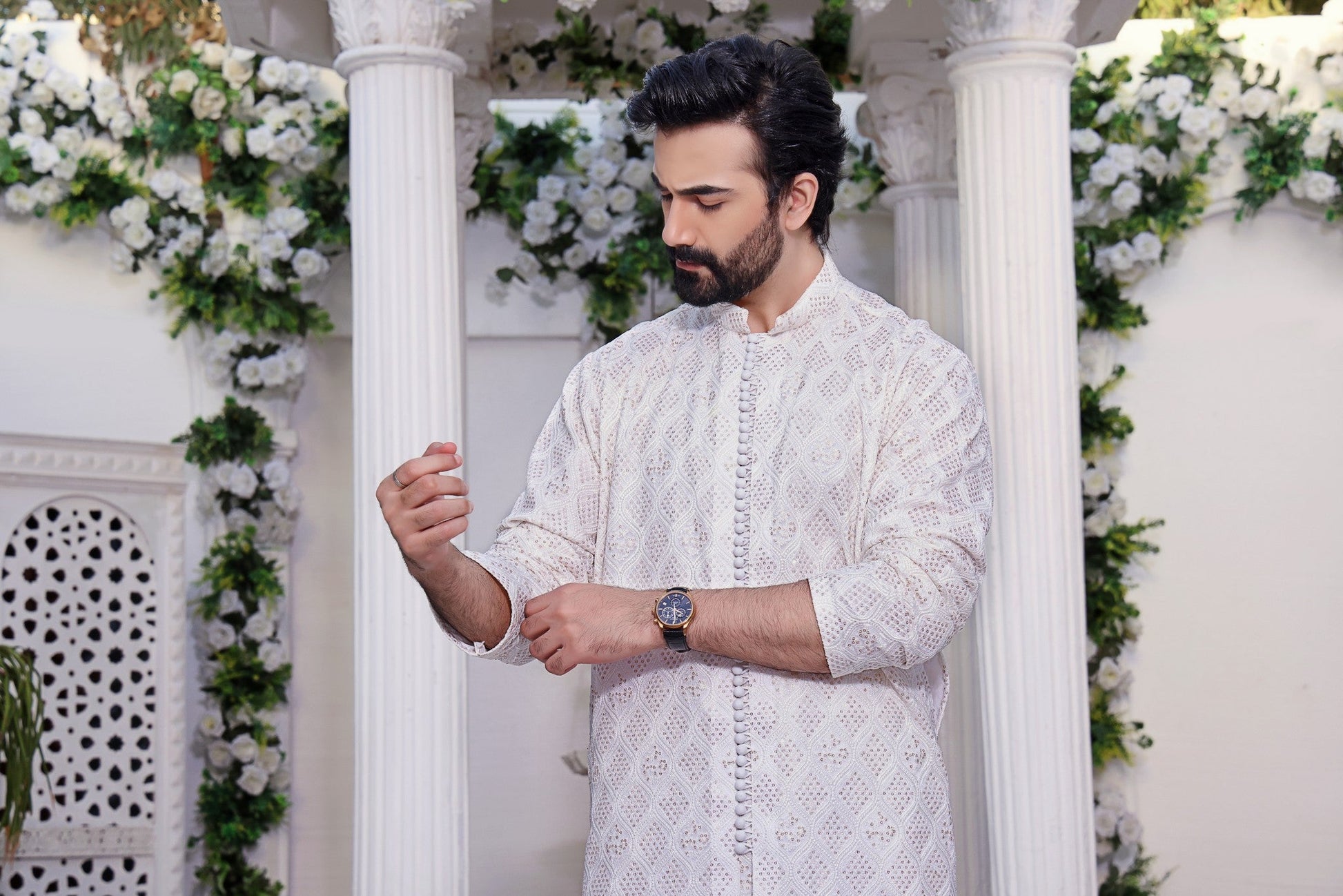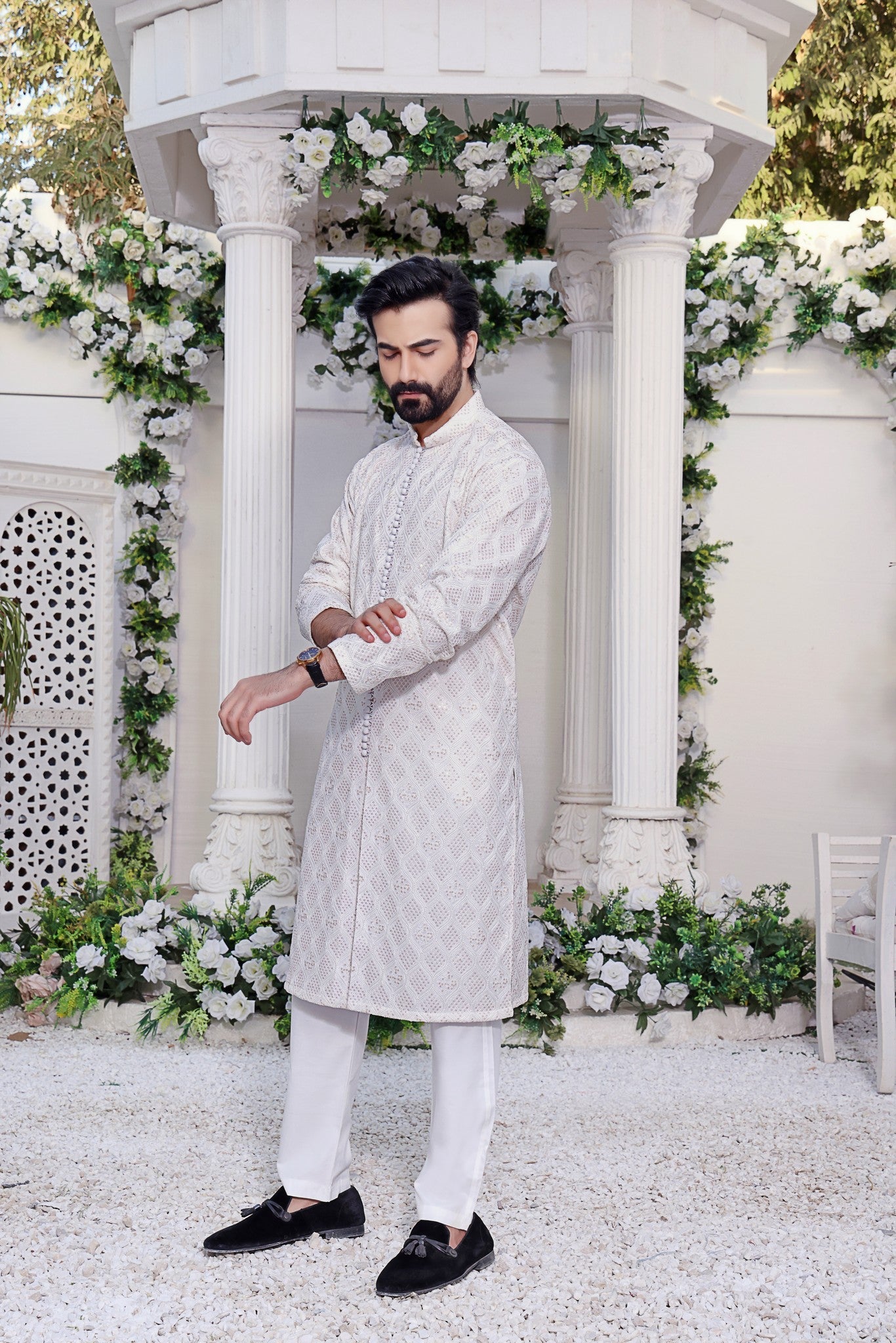 Men's Front Open Kurta Pyjama on Maesuri Fabric