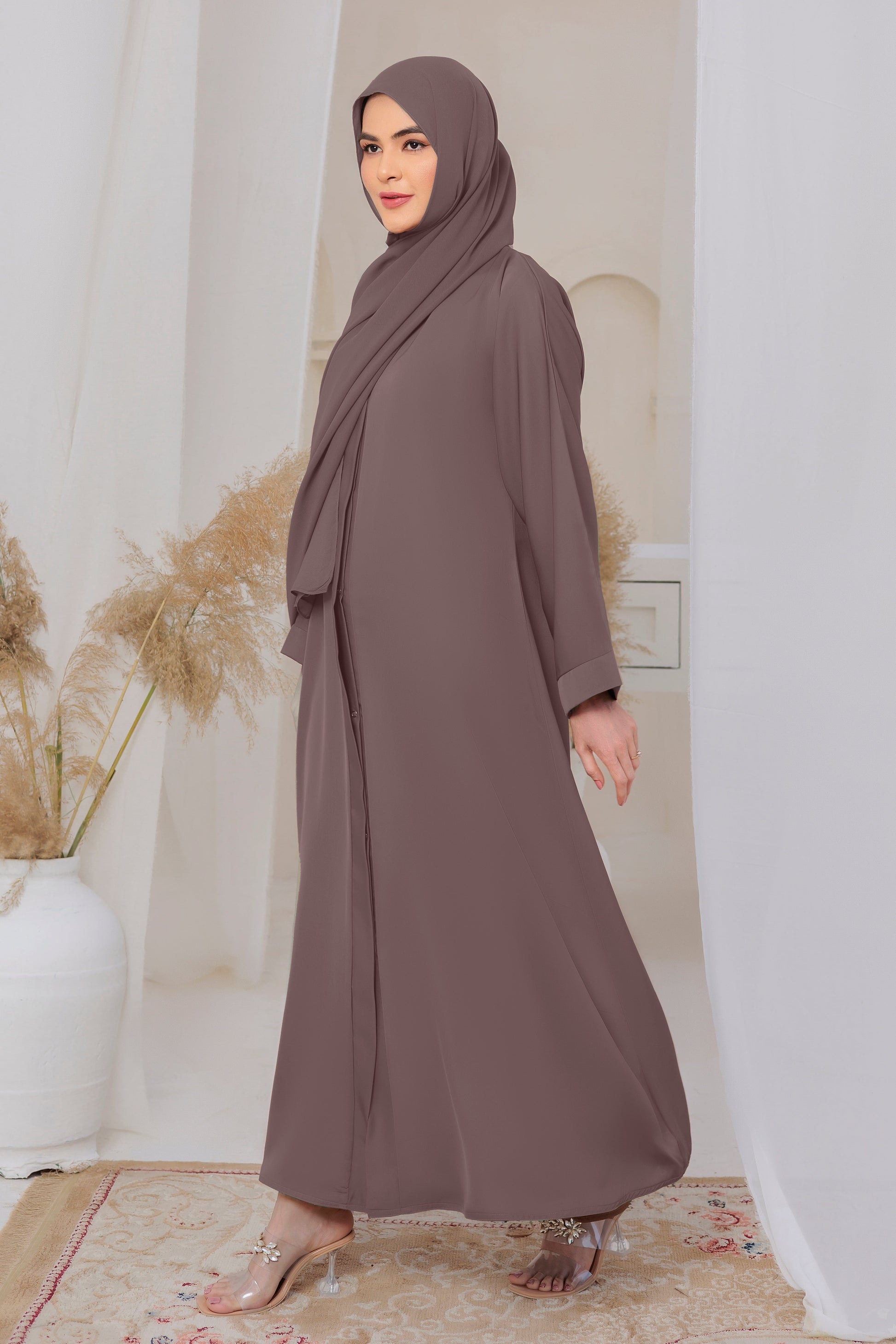 This is a must for your wardrobe collection with our new latest colors which is breathtaking and ultimately gorgeous which is our hot sellers these days front open style abaya and loose pattern sleeves come along with pure Korean chiffon Sheila