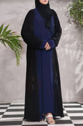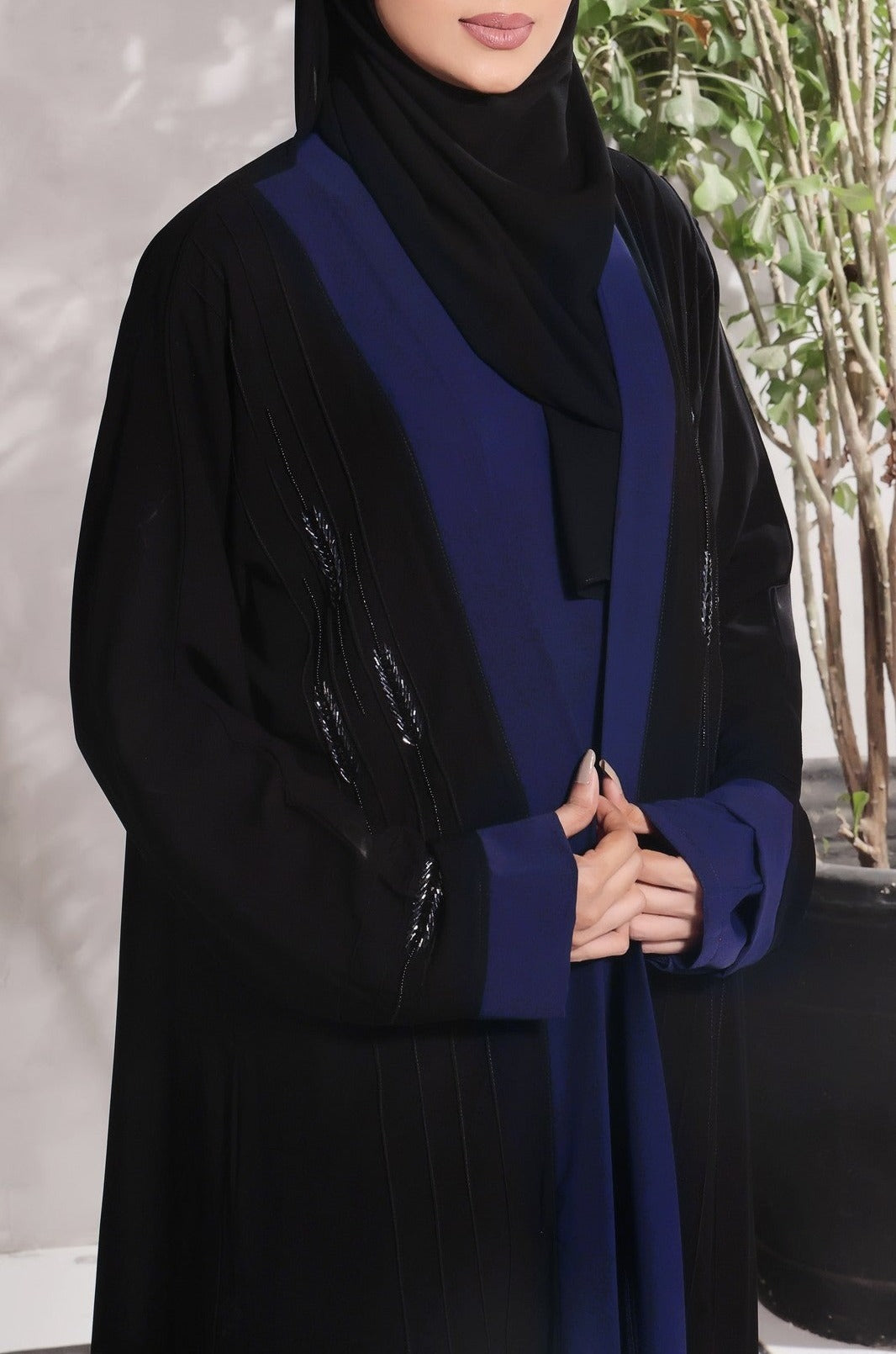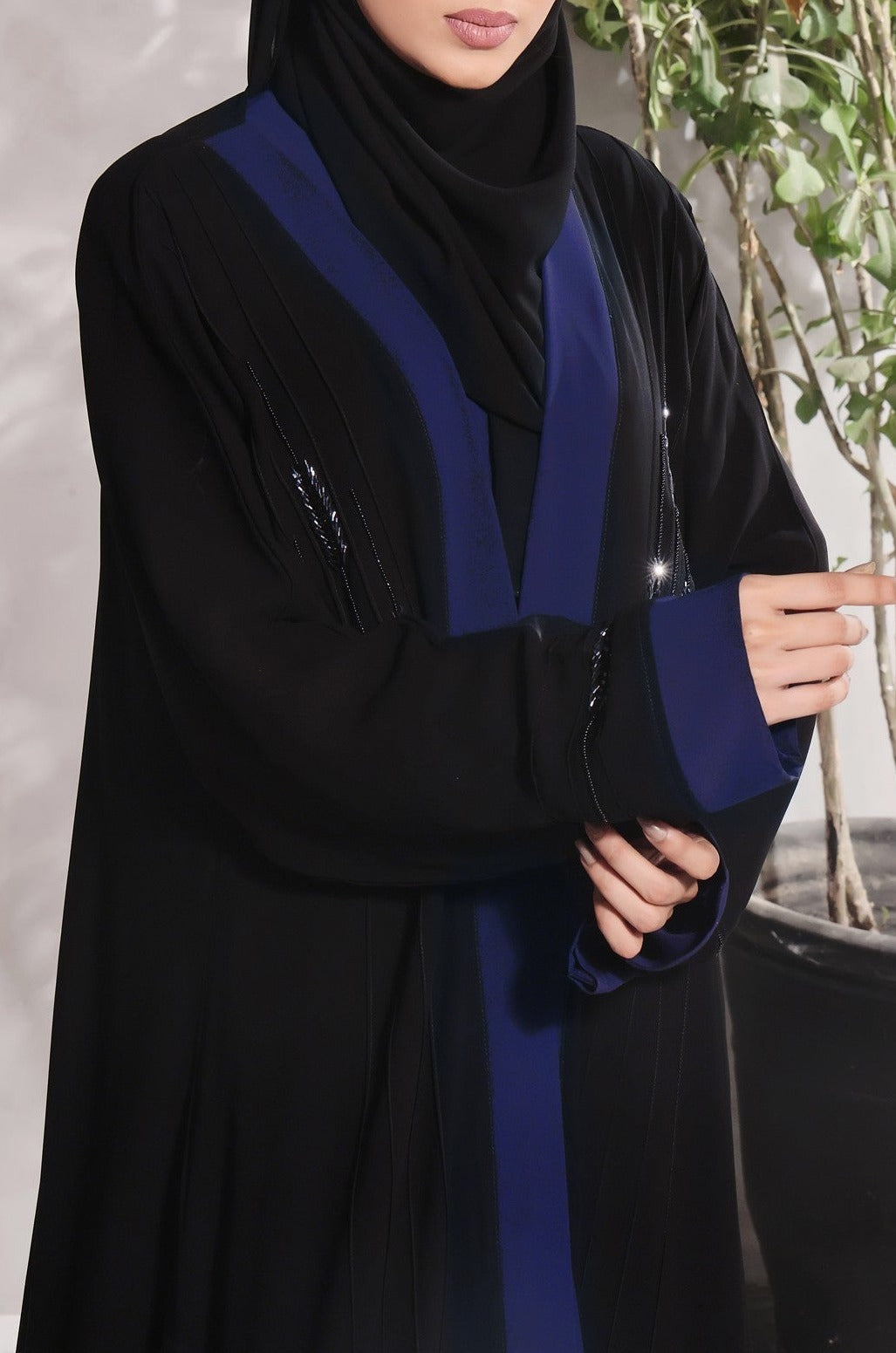An aura of luxury, constructed on fine premium Dubai fabric which is a hit code these days, hand work with bunch on front made on high multi chiffon upper and blue inner both separate, with pure Korean dyed chiffon Sheila