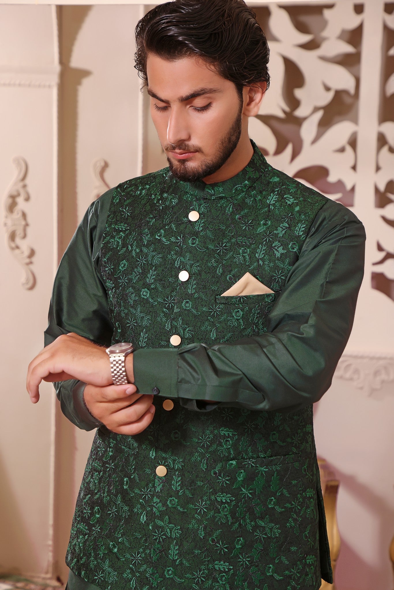 Men's Formal Waistcoat with Suit on Jamawar Fabric with Computer Embroidery.