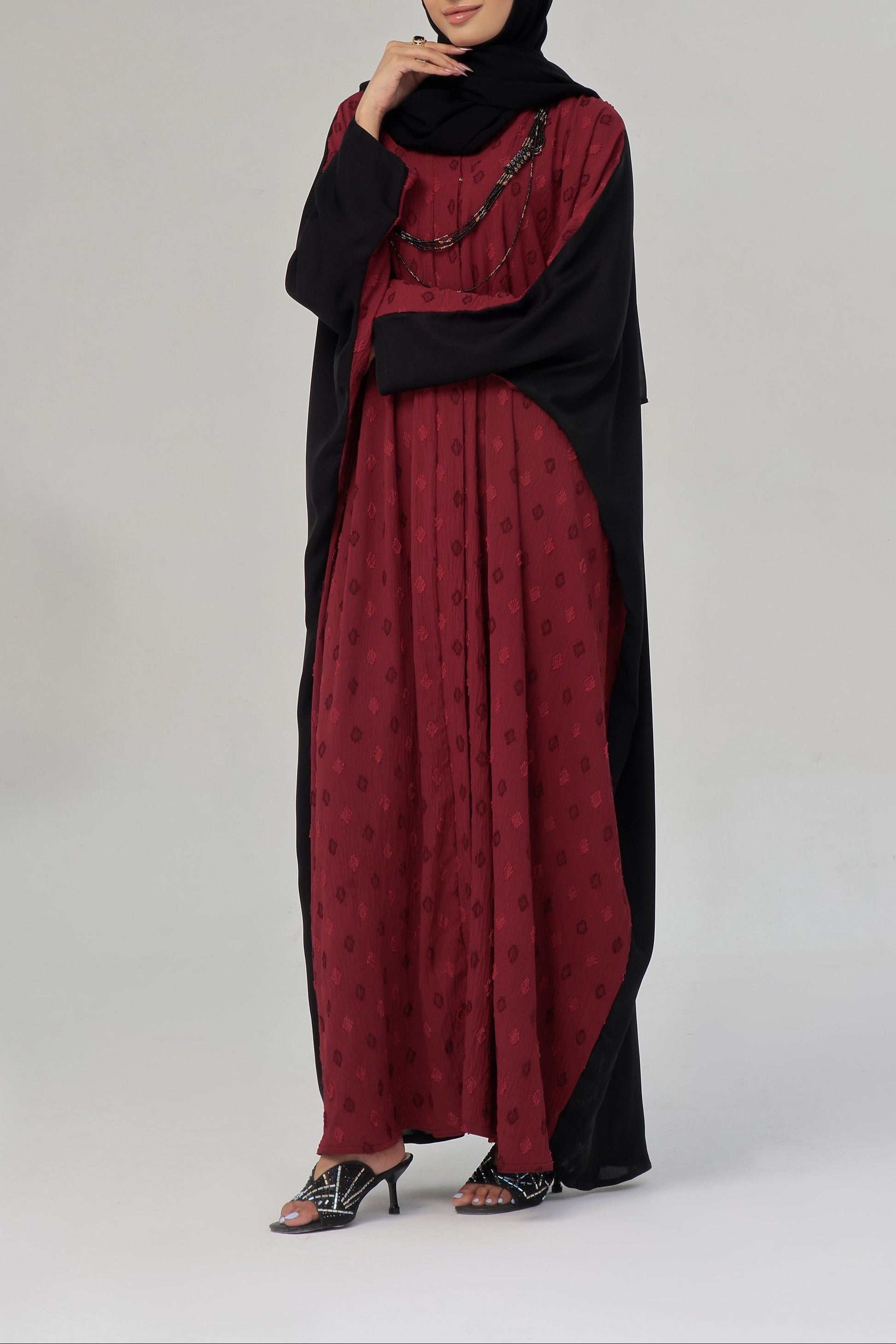 This is a must for your wardrobe collection with our new latest design CY fabric which is breathtaking and ultimately gorgeous which is our hot sellers these days front open style baggy abaya with double sided fabric which comes along with Pure Black chiffon Sheila