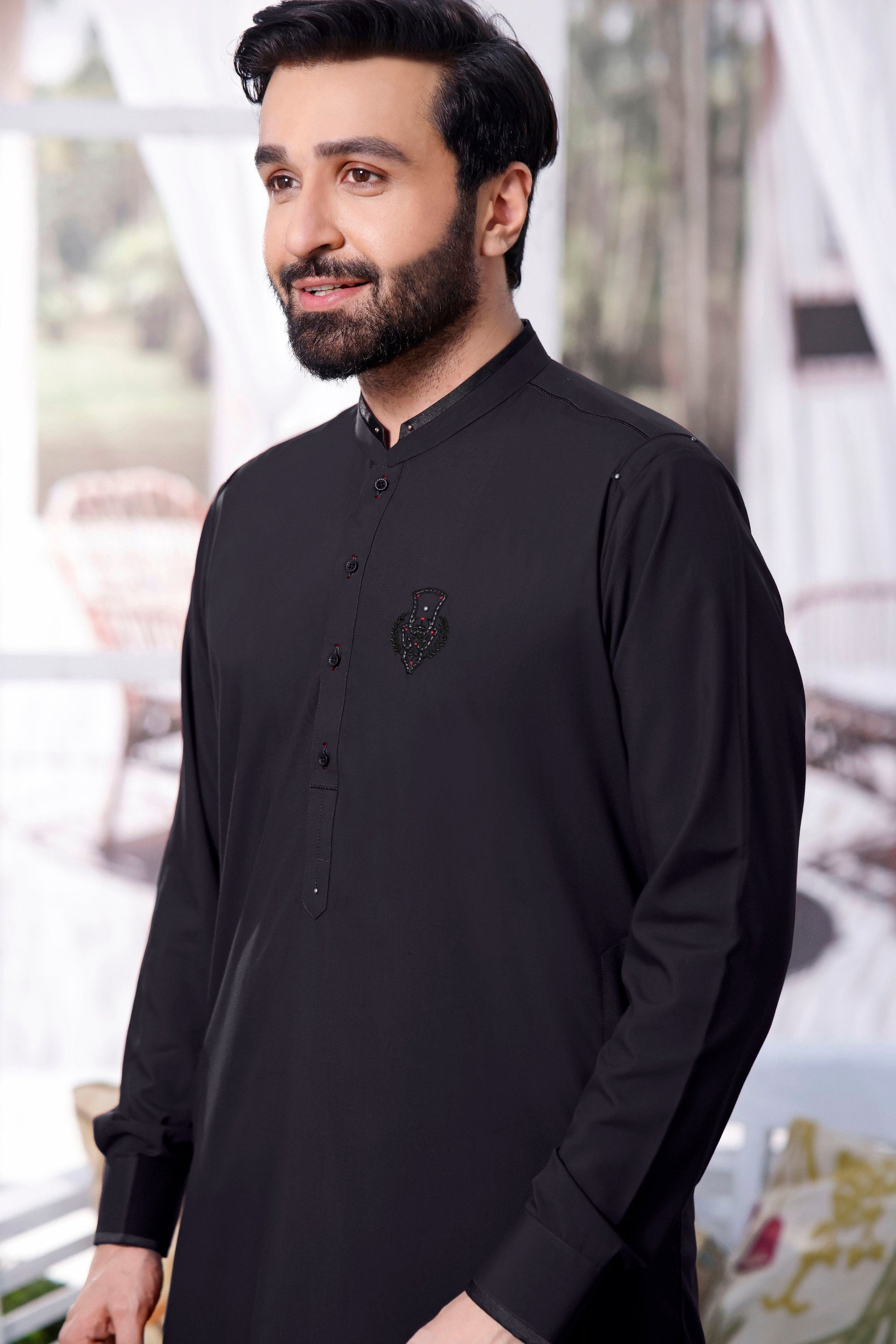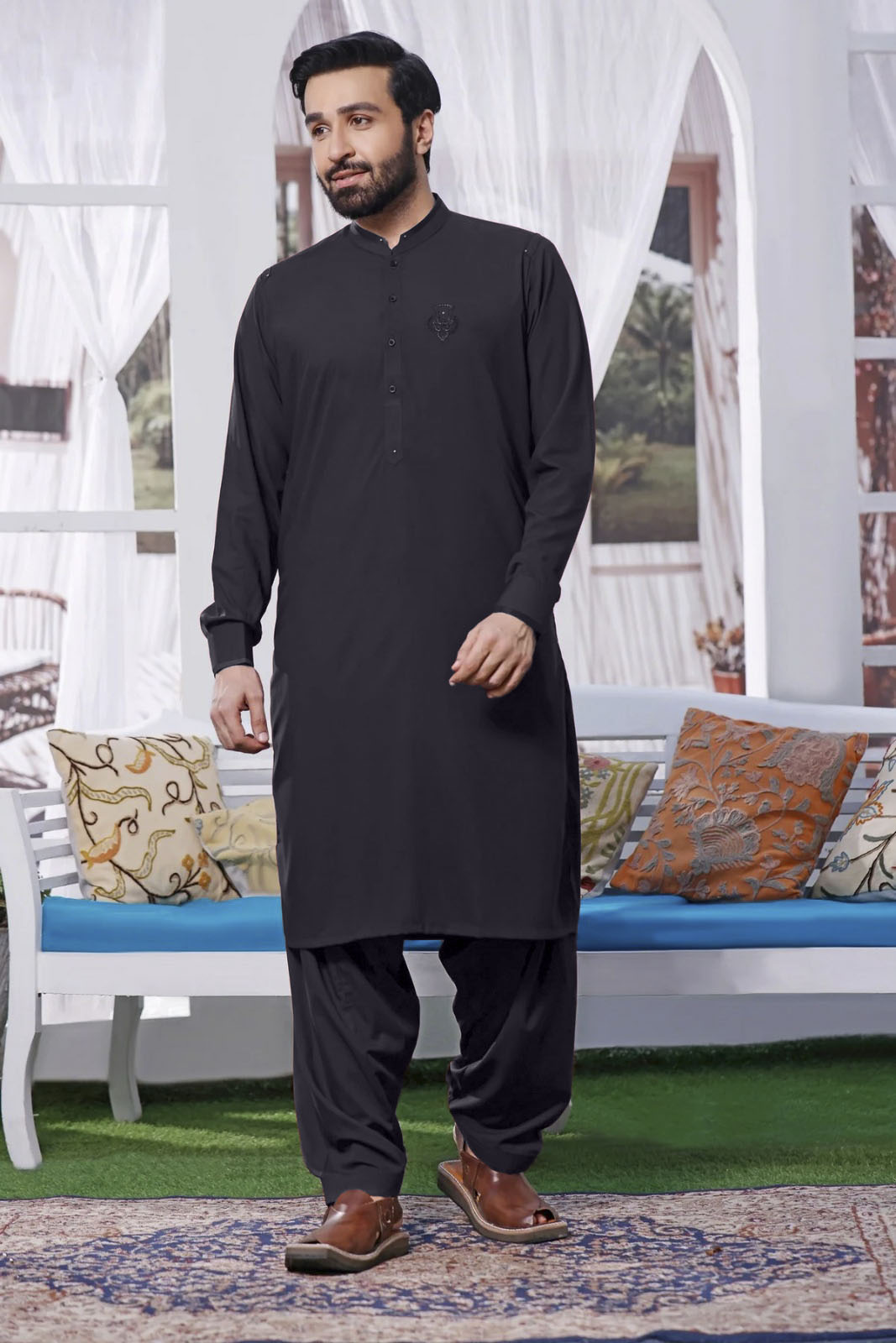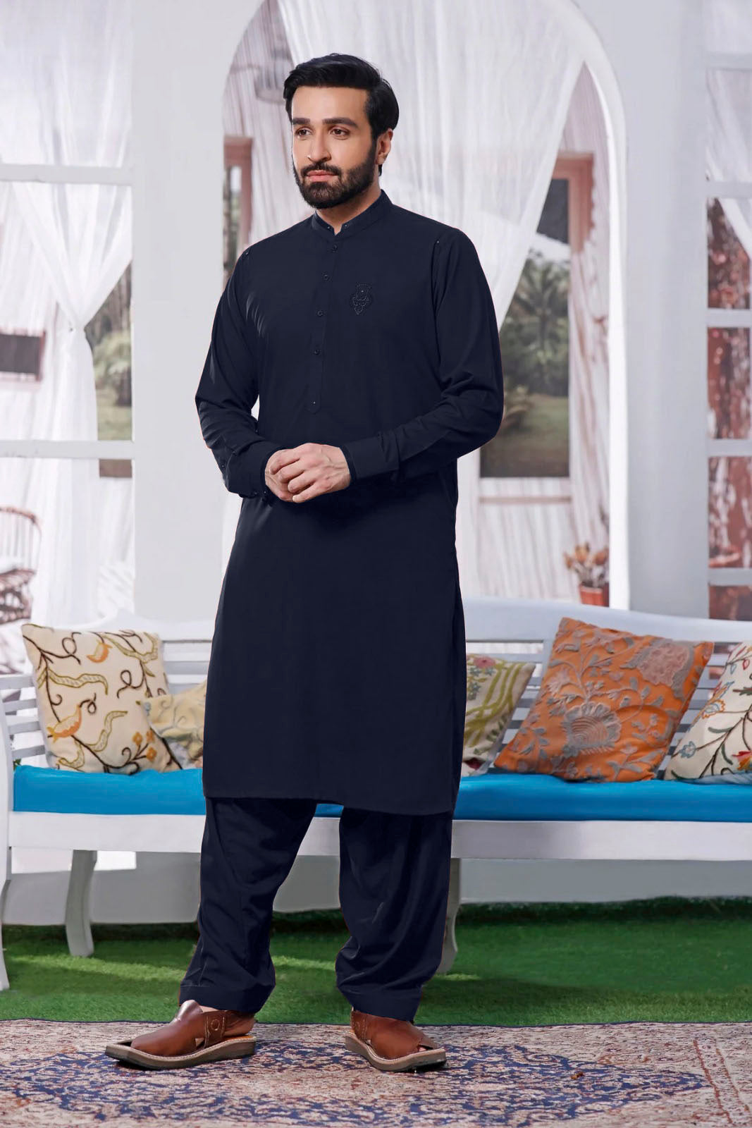 Men's Formal Kameez Shalwar with Embroidery on Planket and Front