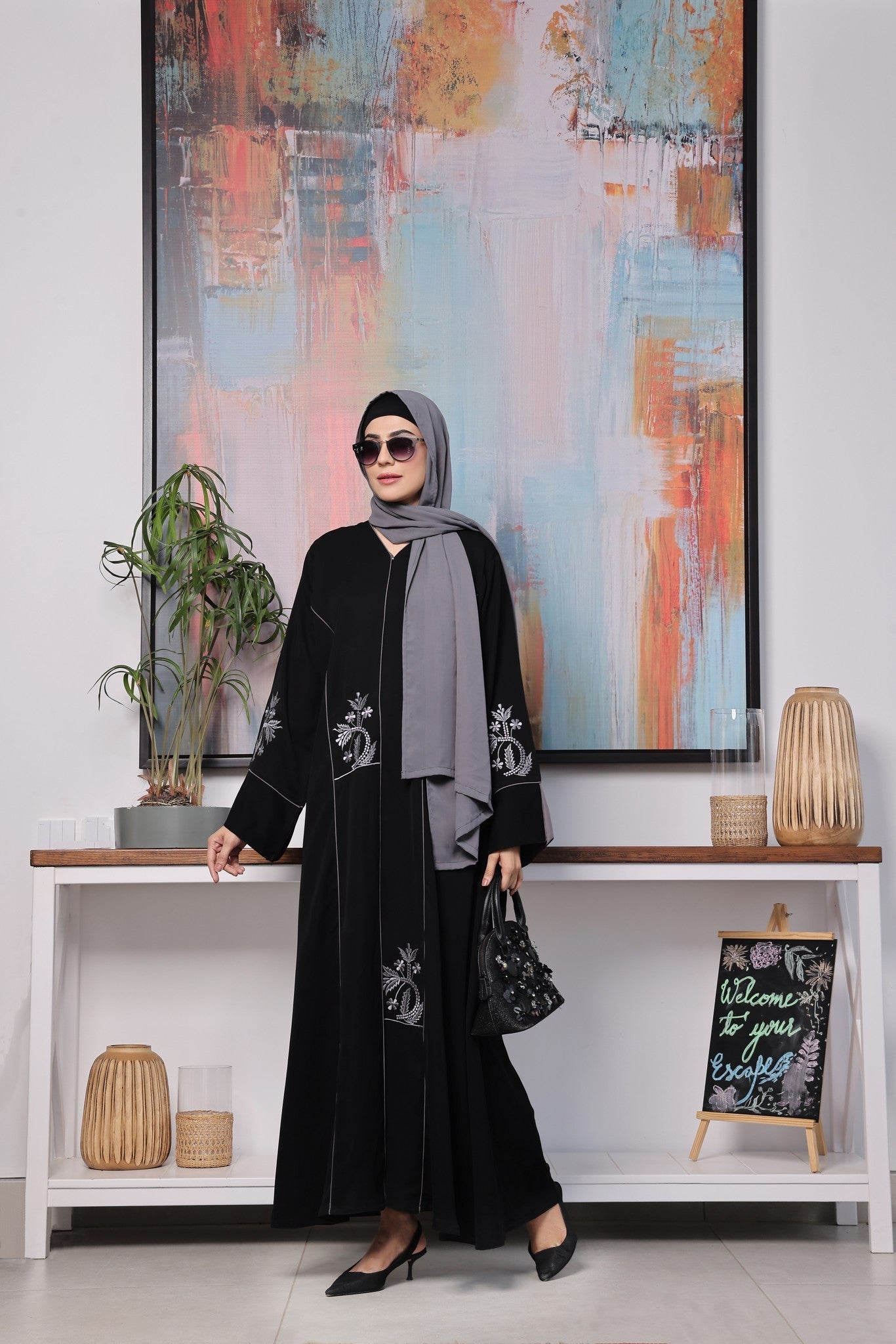 Our beautiful front open style is constructed on imported fabric which is soft and durable, fabric manipulation is done on bodice with embroidery on front and sleeves along with pipin all over making it flouncy and elegant, comes along with Korean chiffon Sheila
