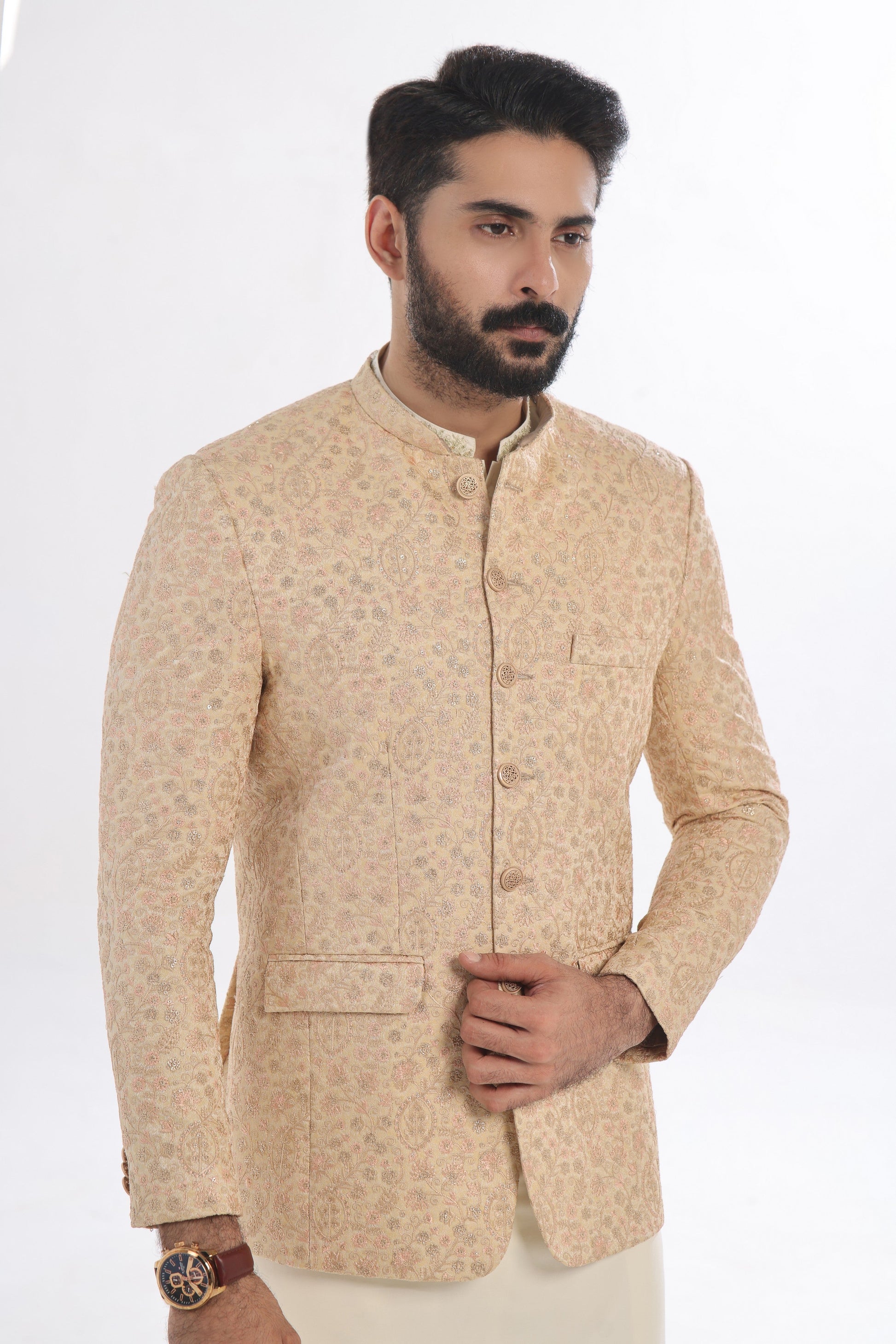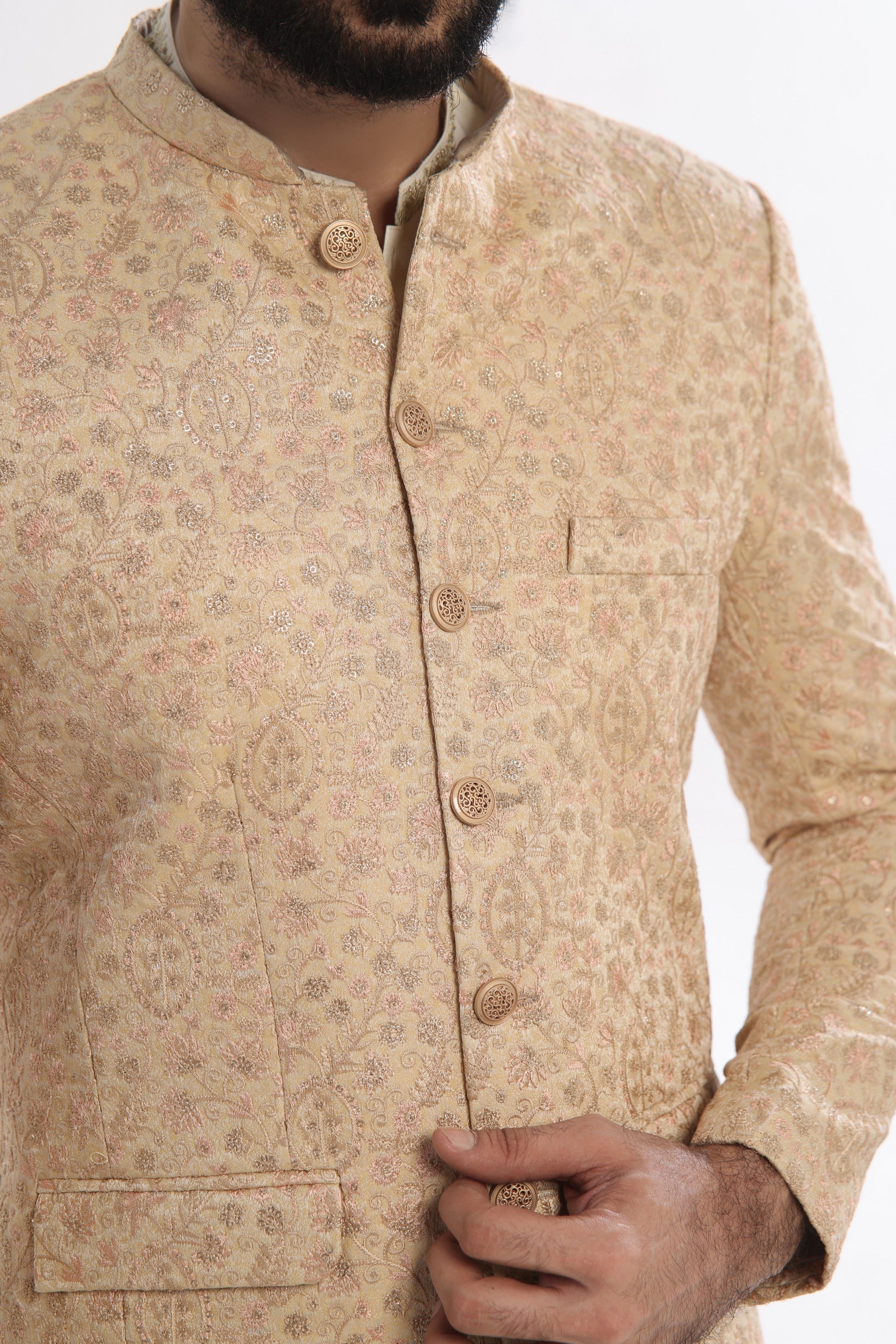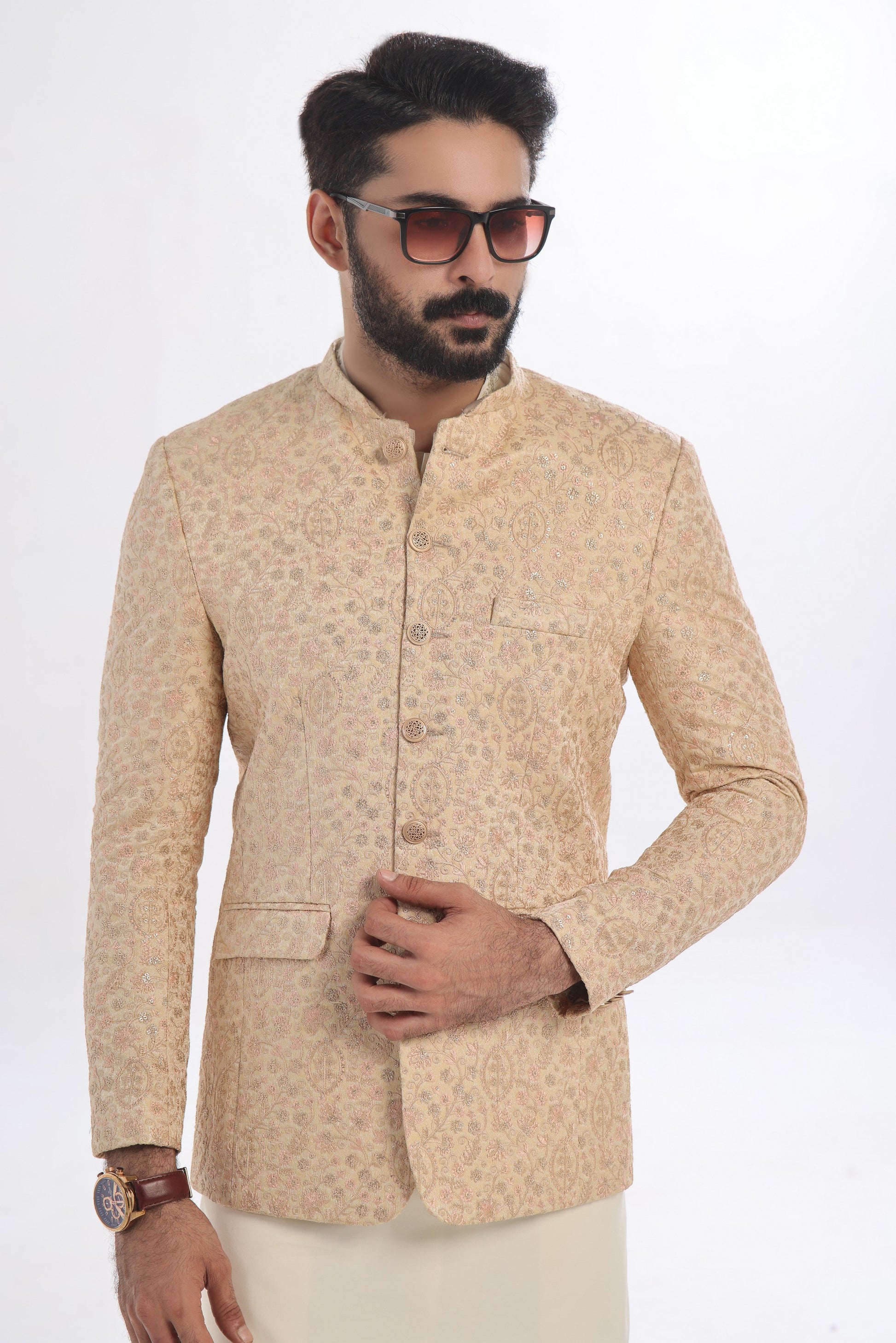 Men's Formal Jamawar Prince Coat With Computer Embroidery