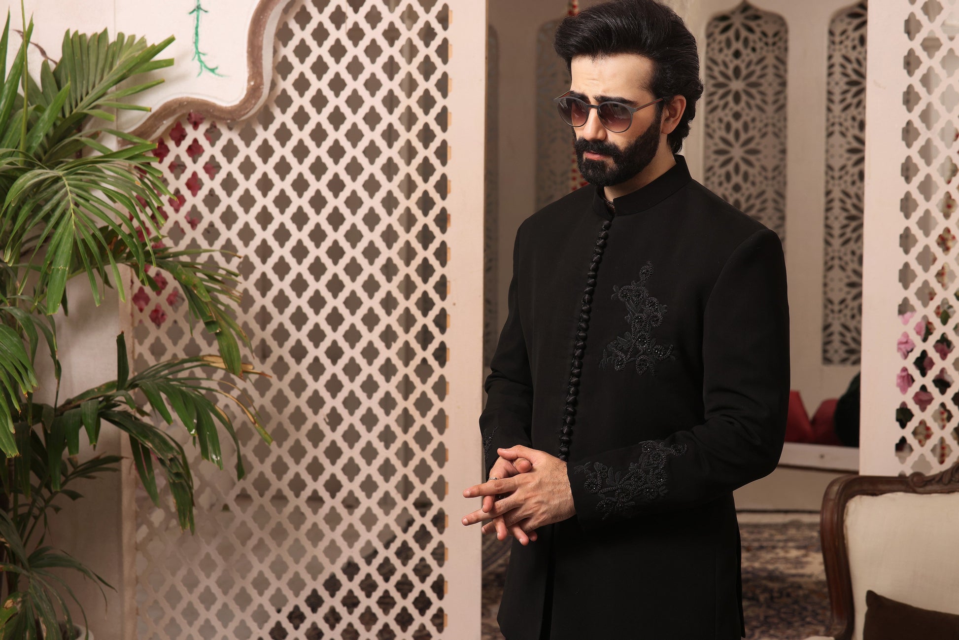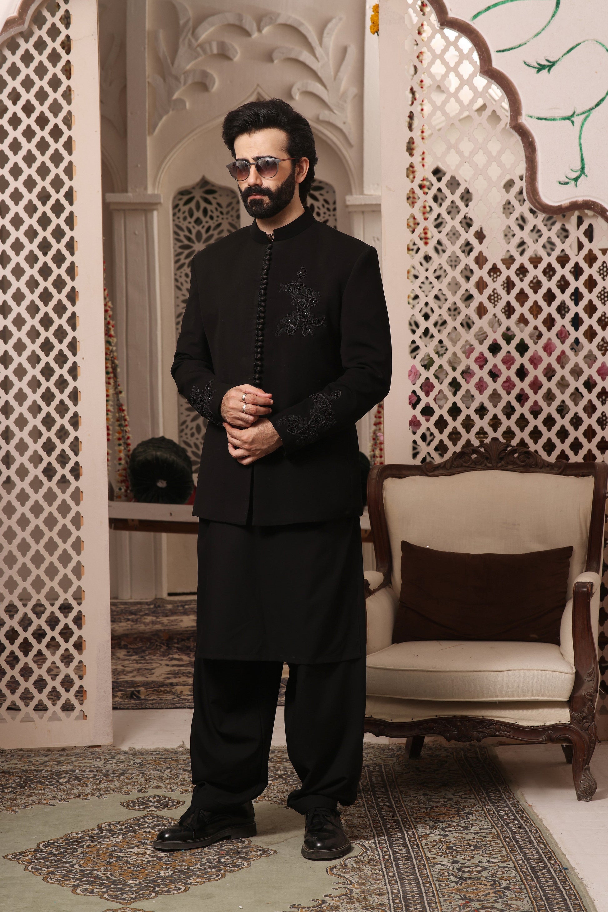 Mens Designer Prince Coat with Hand Embroidery on Front and Sleeve