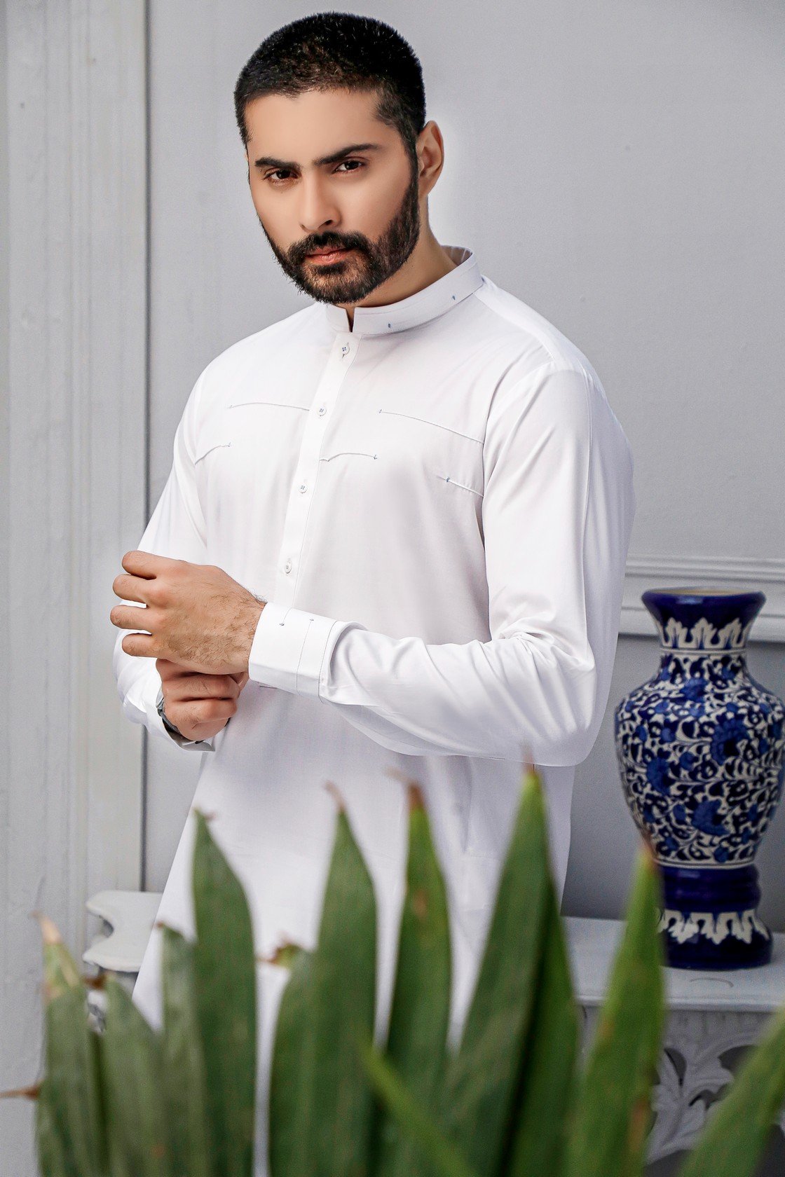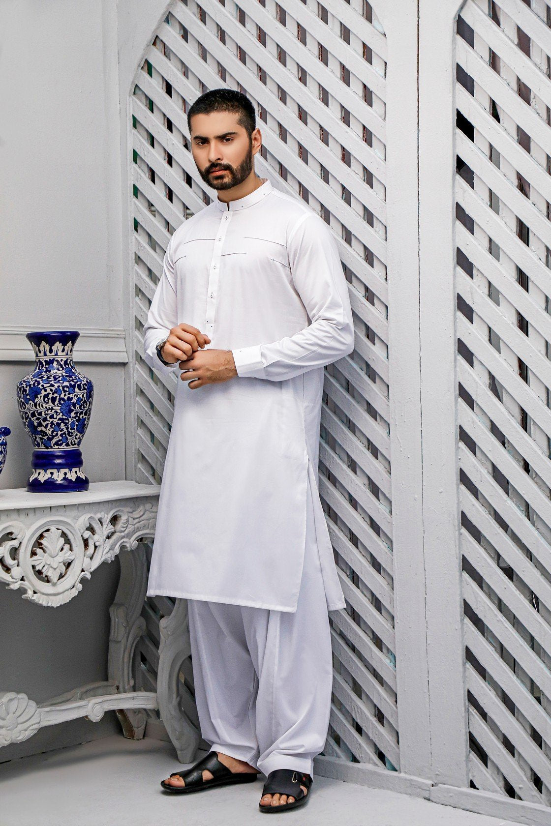 Festive Collection Men's Kameez Shalwar with elegant Stitching details on the Front.