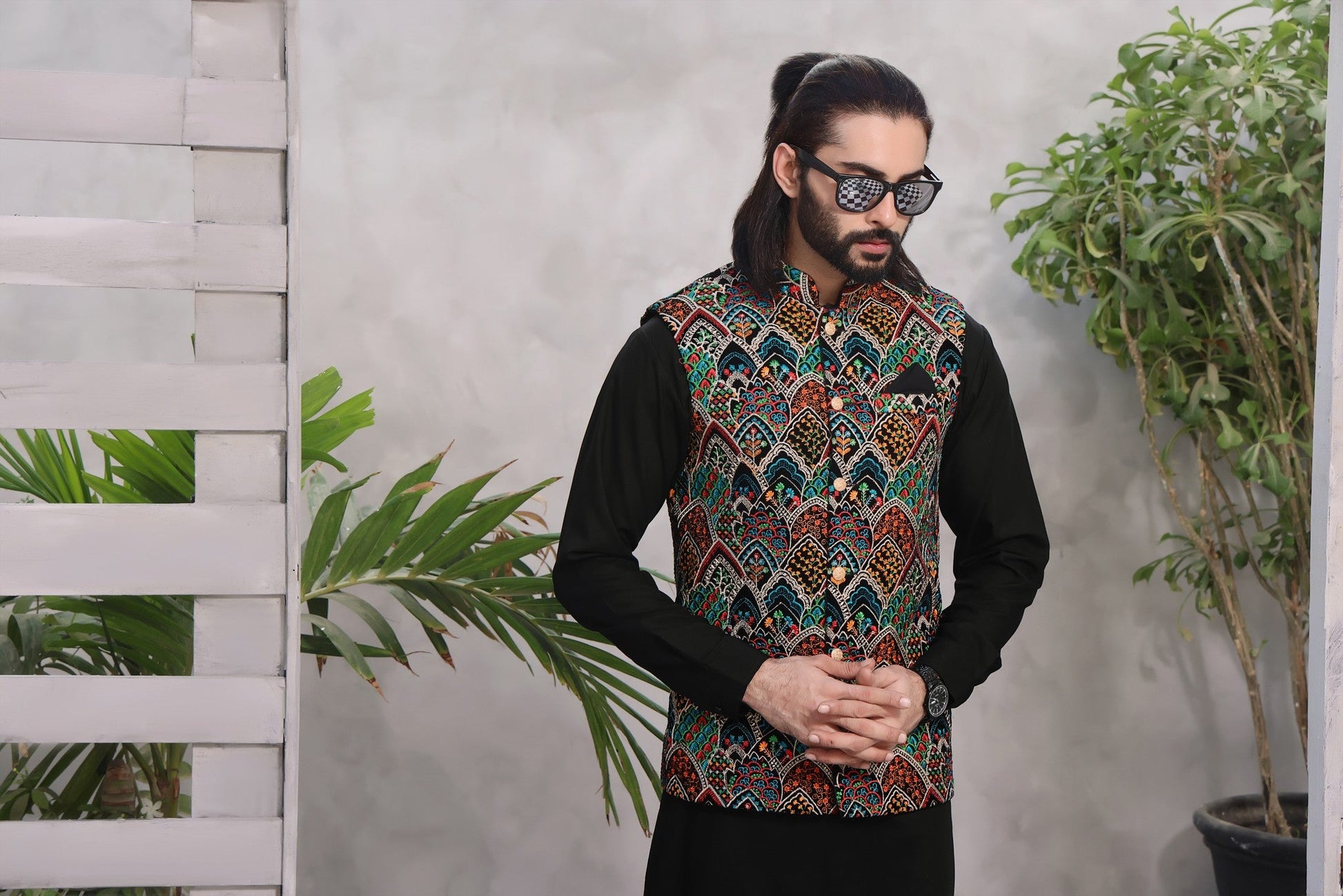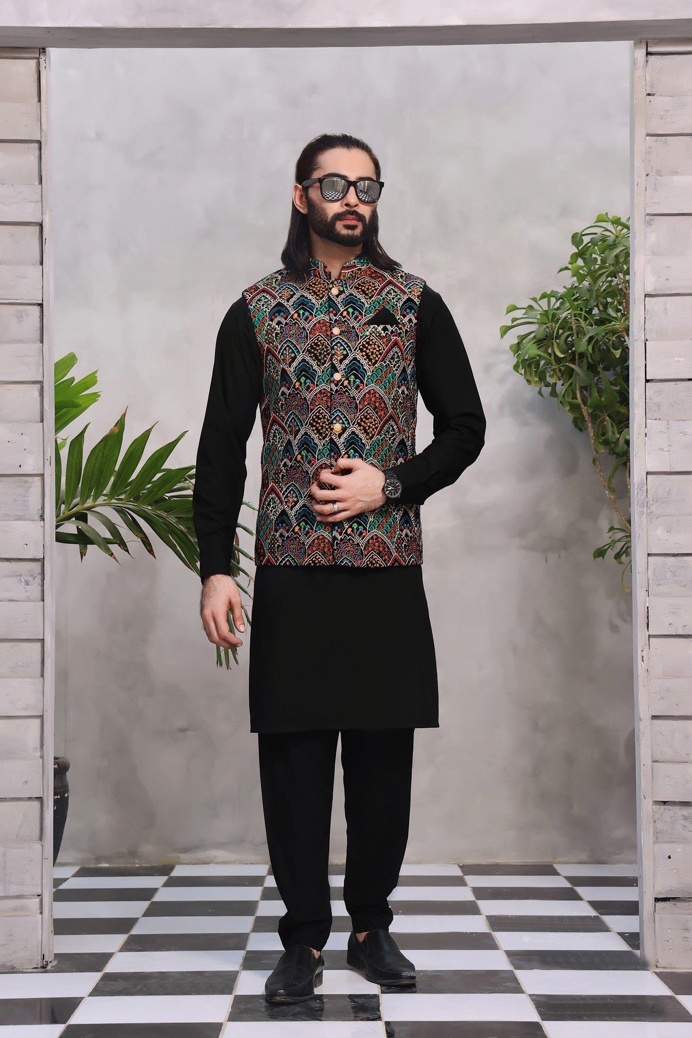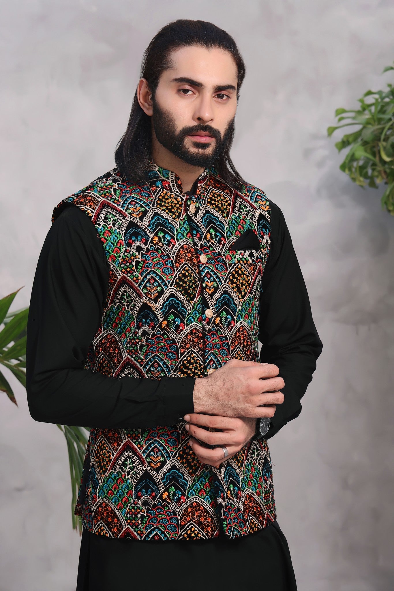 Men's Formal Velvet Waistcoat with Multi Color Embroidery