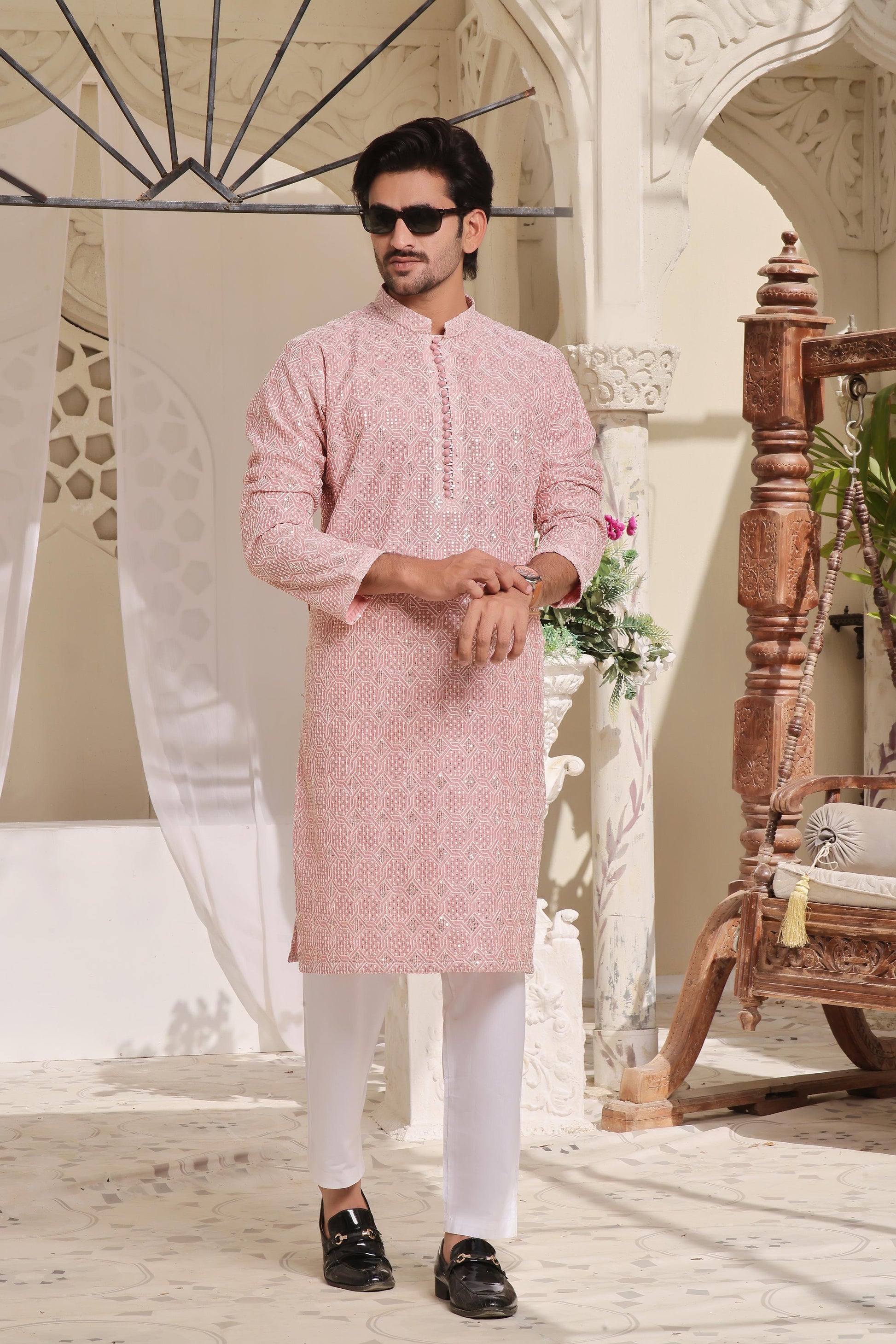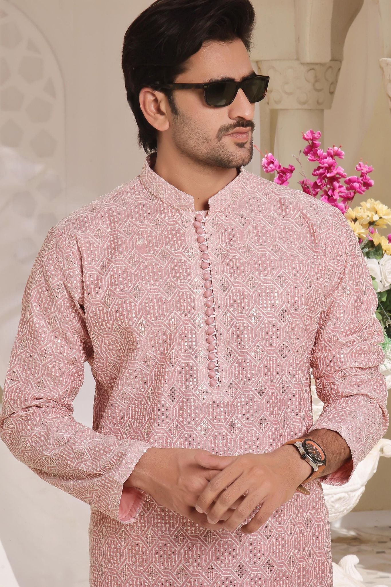 Men's Formal Sequence Embroidered Kurta Pyjama.
