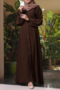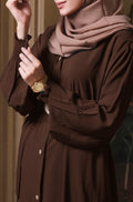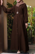 Featuring luxury at its best with our latest front open style which is stylish and elegant belt abaya design you will get compliments wherever you go with this stylish look which comes along with pure Korean Chiffon Sheila