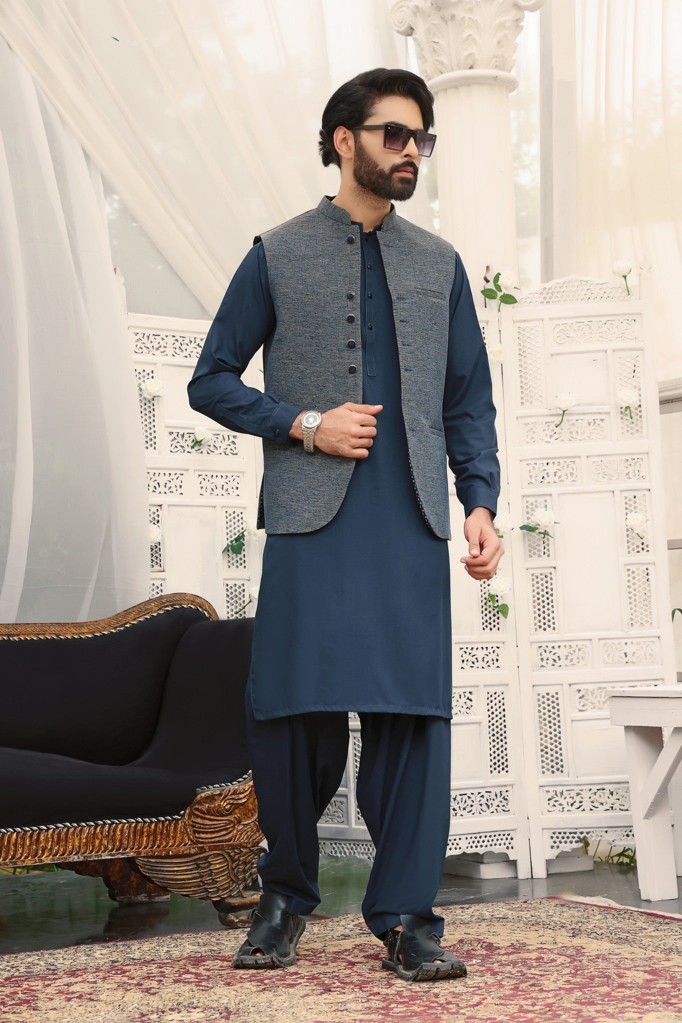 Men's Formal Suiting Waistcoat with Plain Blended Shalwar Kameez