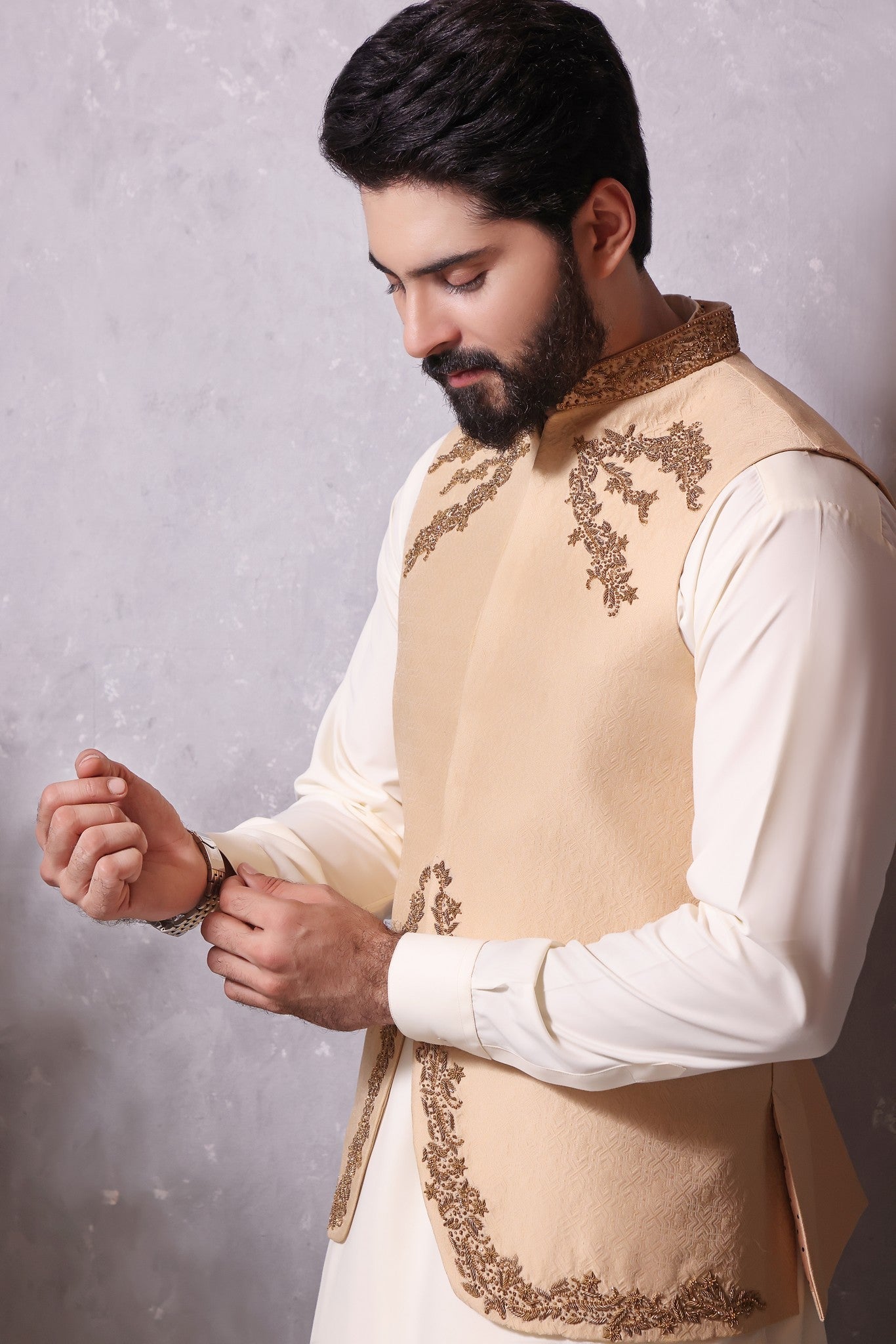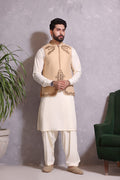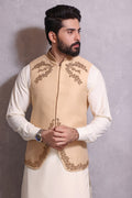Men's Formal Jamawar Waistcoat with Handwork of Antique and Gold.