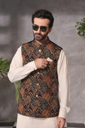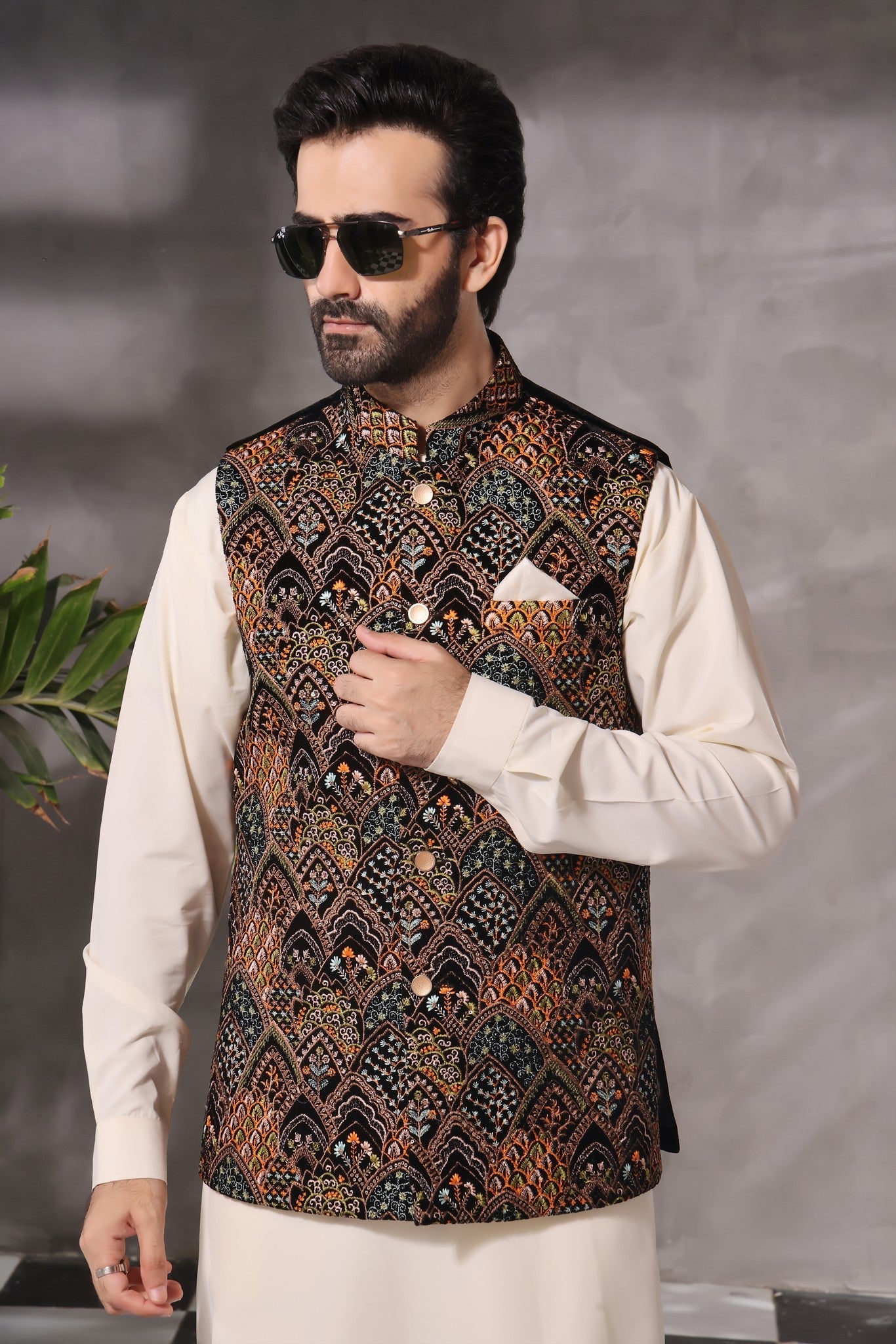 Men's Formal Velvet Waistcoat with Multi Color Embroidery and Blended Kurta Pyjama