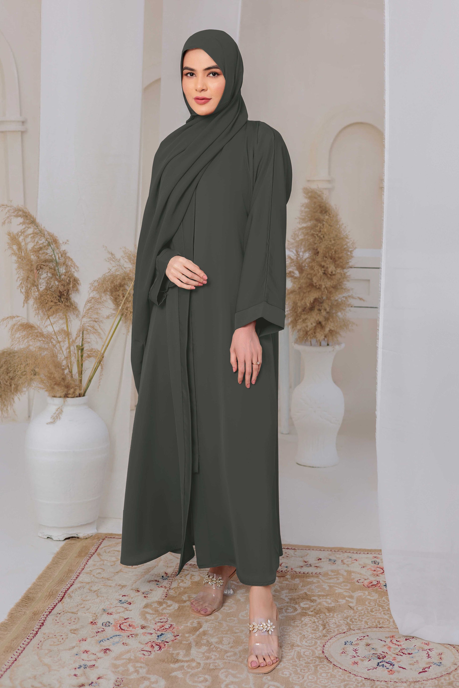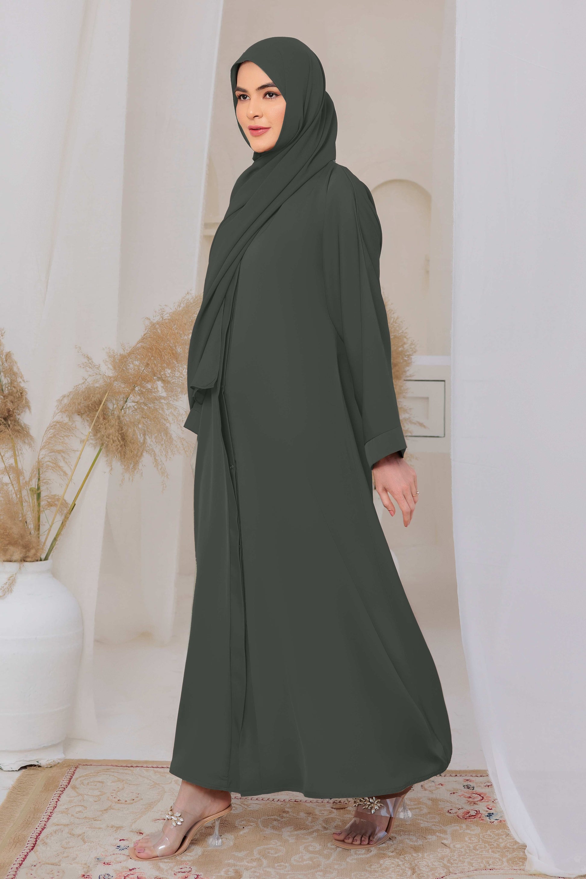 This is a must for your wardrobe collection with our new latest colors which is breathtaking and ultimately gorgeous which is our hot sellers these days front open style abaya and loose pattern sleeves come along with pure Korean chiffon Sheila